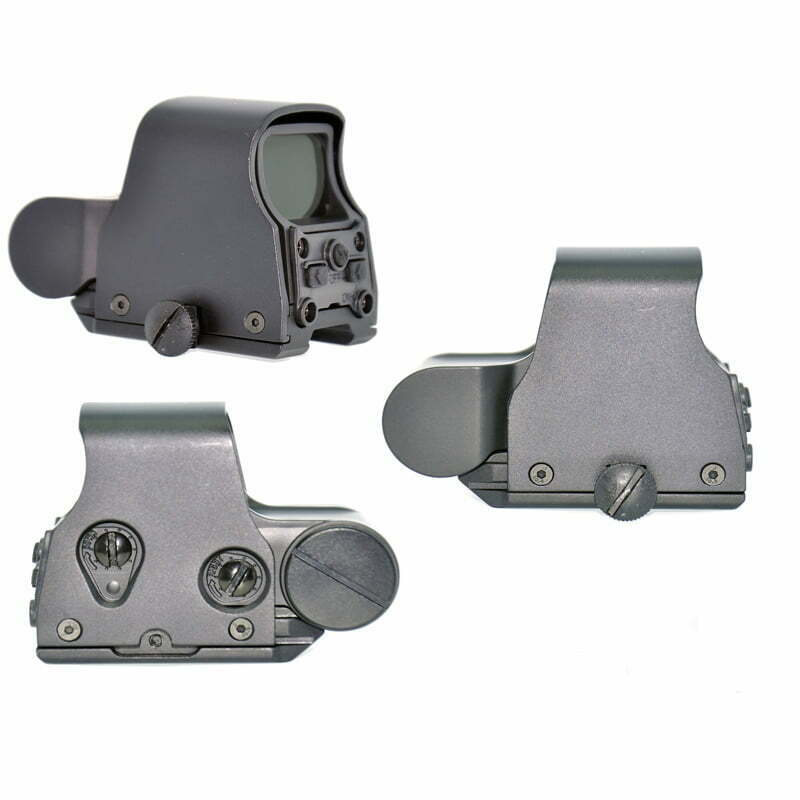 Esta mira holográfica possui uma lente de visão ampla com um campo de visão de 40 graus, o que permite que o olho faça o ajuste mais rapidamente.